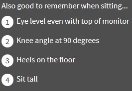 You will also see some suggestions on the right hand side of the screen to attain a better posture. A good posture helps keep your body pain free and keeps stress away.