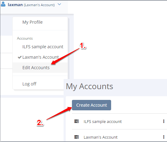 Before using those sections, it would be good to create accounts so that you can add projects, teams, and members under a particular account. Use drop down icon visible at the top right side and access Edit Accounts option. This will help you add new accounts as well as delete any account you want.