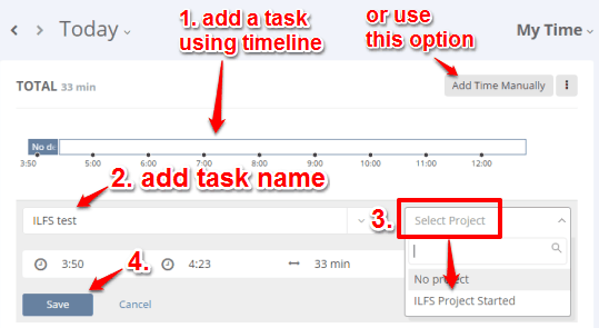 If you don’t want to start a task with a particular project, then you can also create a new task without any project. Also, you can set time span using a timeline for a new task.