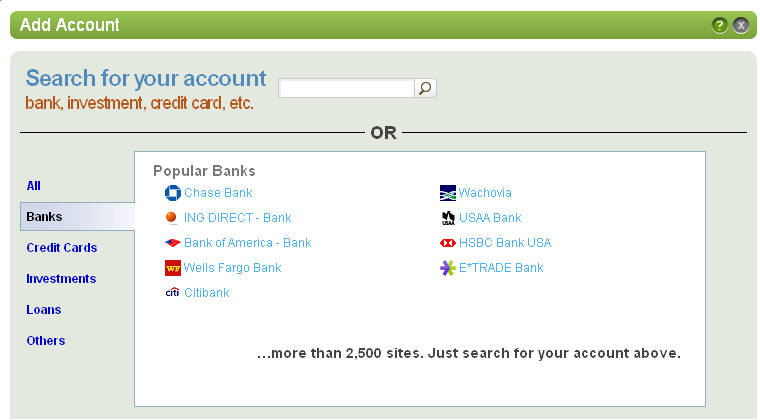 Access it by selecting Budget and then Budget once again from the drop down menu. Great thing about Yodlee is that since this is a well respected company, which knows how to create a safe financial application, they’re in the position to offer their customer the ability to connect their bank accounts with Yoddle budgeting so that every transaction is automatically updated in the budget sheet. To add account simply click on the Add account from the right side bar: