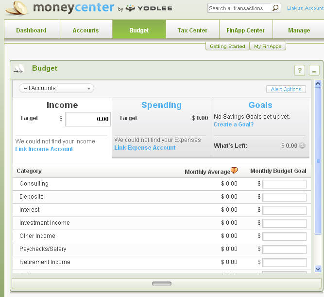 Budgeting is a good way of how you can get a better handle on your spending and save a few bucks. Yodlee’s Moneycenter can help you out with this, because it offers a very elegant and simple to use budget creation tool:
