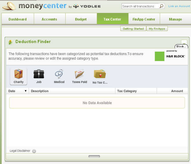 Yep that’s right with Yodlee next to all of the things that were previously mentioned you also get help with your Taxes. Simply click on the Tax Center tab, and you’ll be offered with various tools that you can play around with during that time of the year when taxes are due.