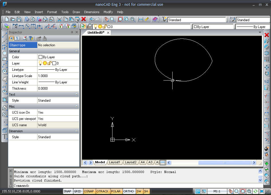 Here we have created a very useless design with the help of the Revision Could shape. While we were creating it, each one of the sides were created independently, with their own manipulation points, which is a nice touch. Another thing that we noticed is that there were helper lines available when we were coming close to another endpoint of the design. This is obviously just the first step, and to create something more concrete a lot more work is needed, don’t judge NanoCAD based solely on this.