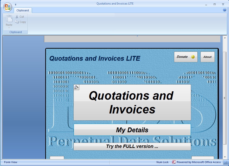When we said that you might need Microsoft Access installed when using this free invoicing and quotations software, we were referring to the fact that there is a standalone installer, with everything you need to run Quotations and Invoices, but there’s also a version available where Access is needed, you only get the database file with input mask.