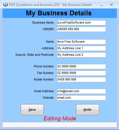 Image above shows us the interface of this free invoicing software. You might notice the familiar Microsoft Office button in the top left corner of the application. That’s because Quotations and Invoices relies on Microsoft Access database, and the entire interface is basically an input mask. For this reason, depending on which version you download , you might need Microsoft Access installed in order to use Quotations and Invoices Lite.