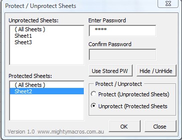 Protect Sheets is a free add-in for Excel which you can use in order to hide and password protect Excel worksheets. Individual worksheets can be protected with the help of two different types of protections, you can either make them hidden, so that they can only be seen by those who actually know that it’s there, or you can add password protection, so that only those who know the password can access the protected worksheets.