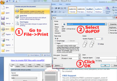 It is very easy to convert documents using DoPDF. When you install DoPDF, it instally as a virtual printer. Now, whenever you need to convert a document to PDF, just choose Print option in the document, and select DoPDF as the printer.