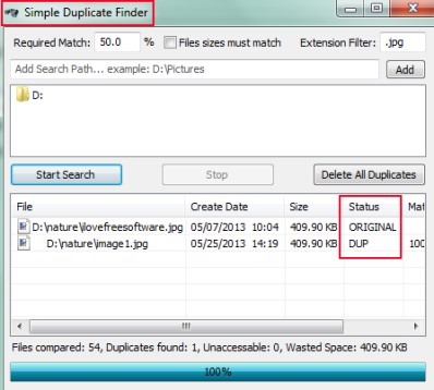 Simple Duplicate Finder is really a simple but effective software that can find and delete duplicate files along with the extension filter feature. You can give a try to this software and free your disk space from duplicate files. To download Simple Duplicate Finder, click on the below link:
