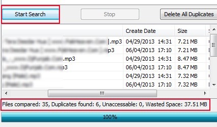 After completing the search, it will show you results where you can see total compared files, duplicates found, inaccessible files, and space wasted by duplicate files.