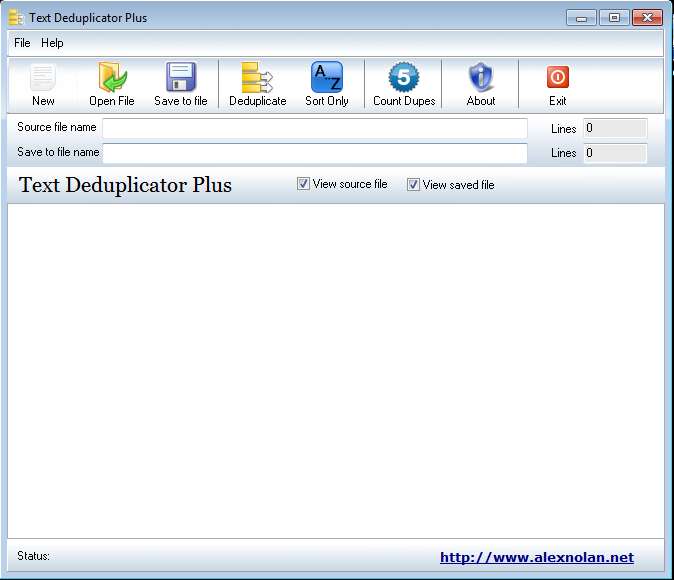 Screenshot above shows us the interface of Text Deduplicator Plus. In the top left corner you have a classic menu, with just File and Help for you to click on. Underneath it you can see that there’s a toolbar with all the options that you need in order to find duplicate line in list, sort list, and also to just count the number of duplicate line, if that’s the only thing that you need to do.