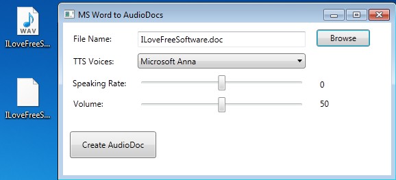AudioDocs is a free Word to Audio converter, which instead of the usual conversion of Word files into other text documents, can create WAV audio tracks. So, if you have Word docs, you can save them in form of audio files using this free software.