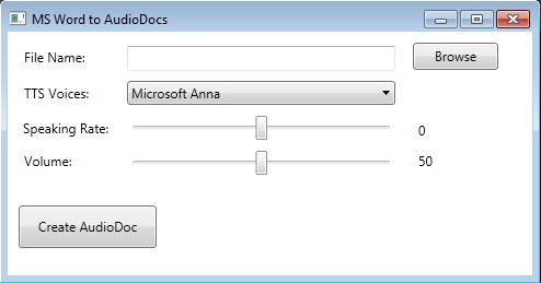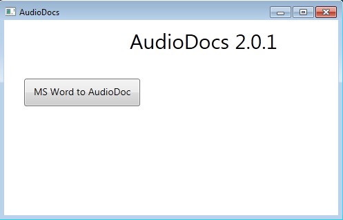 MS Word To AudioDoc button and the title above it are the only things that you’re gonna see when you start AudioDocs. By clicking on this button, file selection dialog will appear, where you can also change several conversion settings.