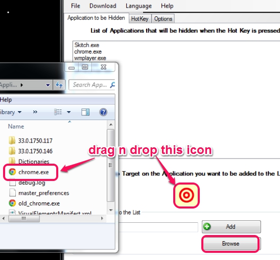 For office workers, where using social networking sites is prohibited in some offices, this could be a useful trick. All you need to do is add application on its interface and set hotkey. Privacy Hide runs silently in system tray and you can even hide its icon from system tray which makes it more interesting to use.