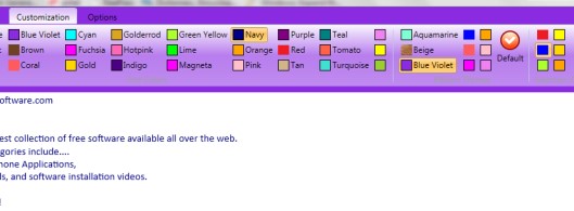 This tab is used to select a color for text, selection color (how selected text will look), and Ribbon themes. All preset colors are available to use and you can select any color with just a single mouse click.