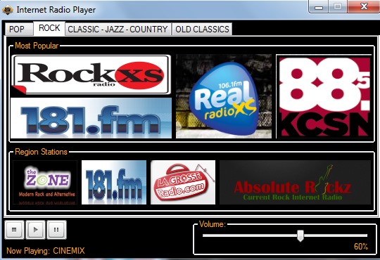 - Built-In Radio player lets you play many popular radio stations divided by Genre (Pop, Rock, Classic, Jazz, etc.). Use Extras option to access the radio player.