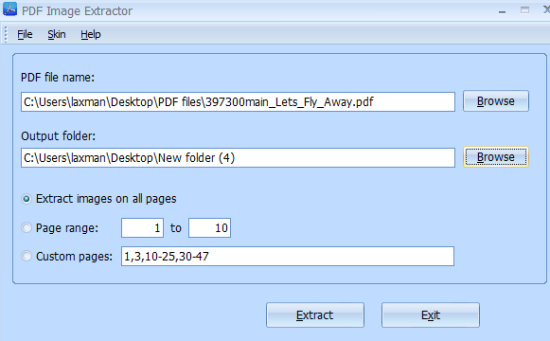 PDF Image Extractor Free is also a handy software in this list to extract images from PDF file. This software also supports one PDF file at a time. However, you will be able to set custom pages (say 1-5, 6-9, etc.) which makes it handy.