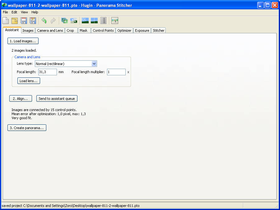 When you have the Assistant tab open load images by clicking on Load images and then click on Align. This will calculate the basic control points and offer you the basic preview of what the panorama will look like.