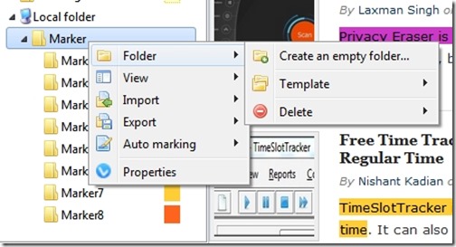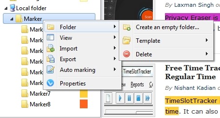 There are eight marked folders available by default (Named Marker1 to Marker8) and each one of them has a different highlight color (you can change the color). So, if you drag the text to a particular folder, it will be colored on the webpage according to the color of that folder. You can add as many text fragments under one marker (or folder) as you want.