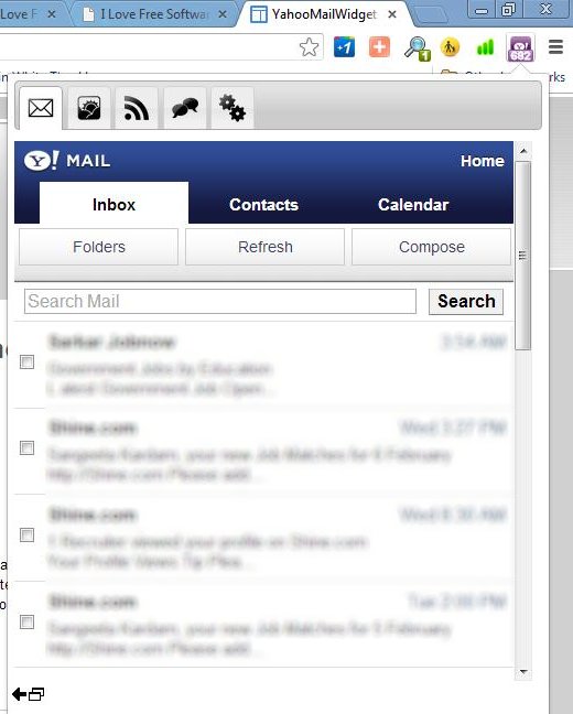 It simply displays your Yahoo! Mail and other Yahoo service feeds within a drop-down window that pops out on the same browser page you are on, and therefore allows you to access Yahoo! Mail easily and quickly, without having to move on to a new browser tab.