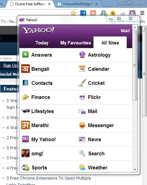 Check Yahoo! Mail in Chrome using Yahoo Mail Widget: