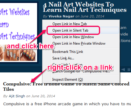 Open Link in Silent Tab is a Firefox extension that silently open a link in new tab but doesn’t load that webpage automatically. That webpage will start loading only when you switch from current webpage to that webpage. Normally what happens is that when you open a link in new tab, it starts loading automatically as soon as you open it. But using context menu option provided by this extension will only open that link in new tab. It will load that link only when you access that tab.