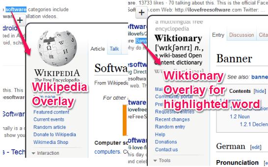 Apart from this function, it also helps to open Wikipedia window or Wiktionary window for a highlighted word or phrase. Just a hotkey is needed to be pressed. That overlay is opened within the same tab. It is helpful in case you want deep explanation for a particular term.