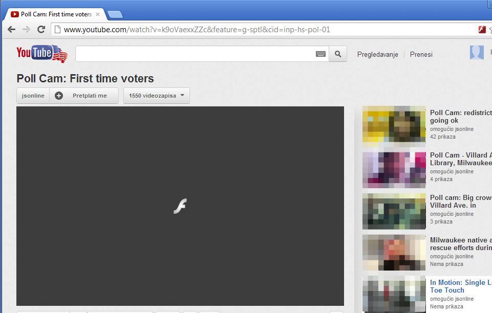 In the image above, you can see FlashControl in action. The YouTube video doesn’t play right away after we’ve clicked on the link. The video box is replaced with a black area that has a white Flash icon in the middle. This is how FlashControl will work right after you install it. Settings can be changed by clicking on the Flash icon which you can see all the way to the right in the address bar in the image above.
