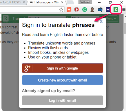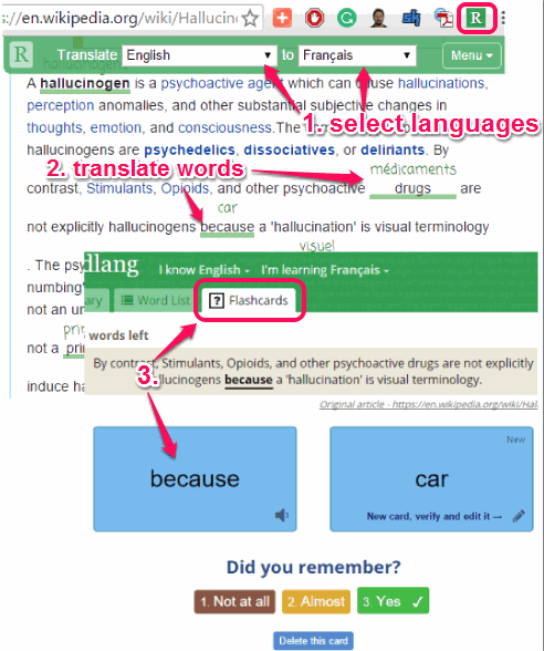 Readlang Web Reader is a free Chrome extension which helps you learn a foreign language by translating the words on any webpage. While reading a webpage, it can quickly translate any selected word from your native language to any other language (like French, German, Spanish, etc.) which you want to learn. Although the same task can be done by any other language translation extensions or online tools, but this extension is a bit special and comes with advanced features. It automatically generates flashcards of words selected by you for translation and lets you use those flashcards to memorize the foreign words.