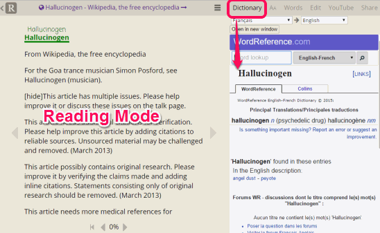 Apart from this, it also opens a dictionary for viewing the meaning and definition of selected word without leaving the active webpage. Moreover, it also lets you import a particular webpage to the Library of Readlang website. After importing the webpage, it activates the reading view where you can translate words, open dictionary, and learn the language you want to learn in a much easier way.