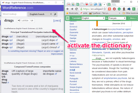 - Using its pop-up window, you can open a dictionary for the selected foreign language in a sidebar. It automatically provides suitable dictionary based on the foreign language set by you.