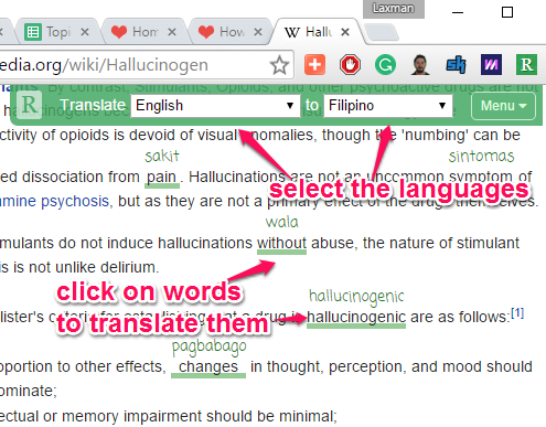 After this, use that pop up to select your native language and the language you want to learn. After this, when you click on a word available on that webpage, it will immediately translate that word to the foreign language. In the same way, you can translate more and more words.