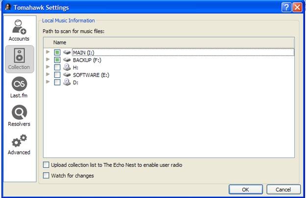 The interface is easy and simple to use. To scan a particular partition on your system for searching music is simple. Under the settings section and under the Collection control you can achieve this.
