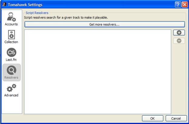 The main feature of this music player is to integrate the different libraries from different sources on the web, it is done smoothly. To do this, go under the Setting section and click on the Resolvers section. If you have not already added source it will be seen as the following: