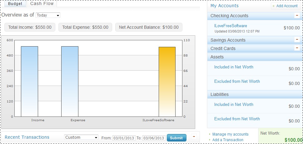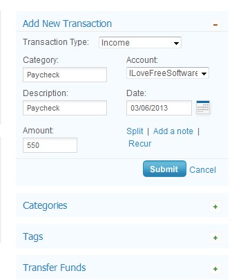 BudgetPulse is a free online budget management service where you can manage your monthly financial transactions, income, expenses and overall cash flow. Next to all the standard features that you’d expect from an online money management service, like creating expense categories, setting budgets for each expense type, statistics with charts and so on, BudgetPulse also supports both data export and import from third party money management software like Quicken and Microsoft Money.