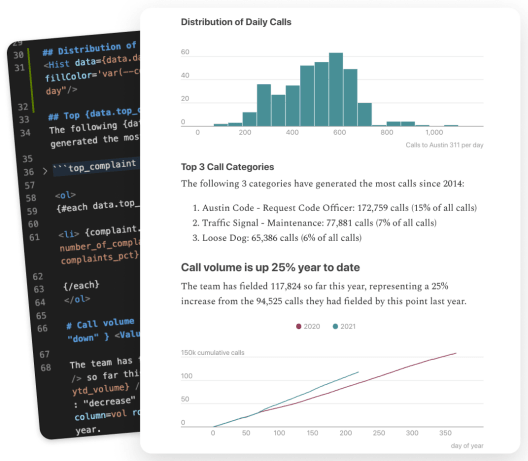 Now, replace the content of the Markdown file with your own. To add a SQL query on the page, you use the following syntax. Paste this snippet anywhere in the Markdown and see the results in the browser. It will automatically reload the page for you to show to the changes.