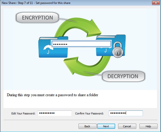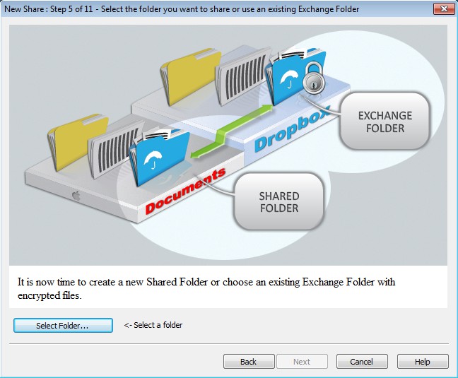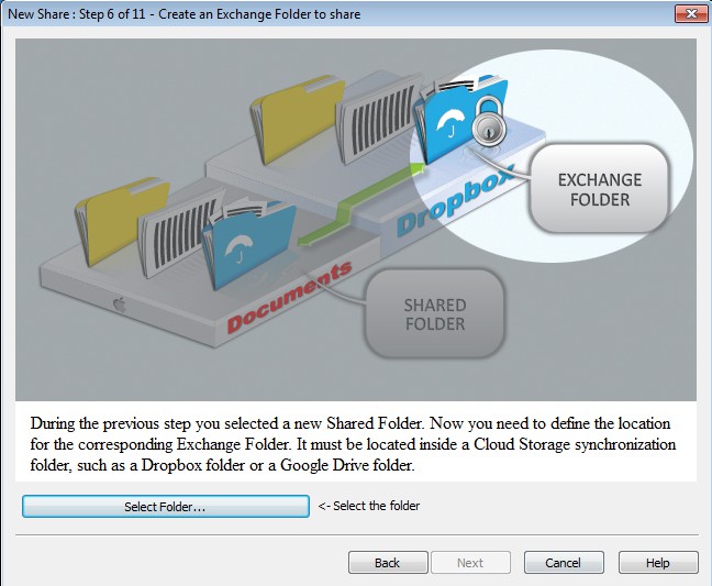 The second folder has to be located somewhere in your Dropbox folder, or Google Drive folder, or SkyDrive folder, or in a folder of any other file hosting service. Secured Cloud Drive will automatically detect files that you save in the first Shared folder, encrypt them, and then transfer them over to the Exchange folder, which is located in the directory of your favorite file hosting service. From that point on, Dropbox client, or any other client that you use will simply upload the encrypted file online. You have to set a password also.