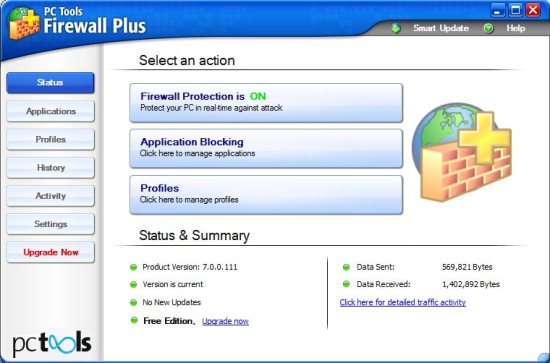 PC Tools Firewall Plus is a Free Firewall Application to protect your computer from intruders and malicious network traffic. It controls both uploading and downloading activities.