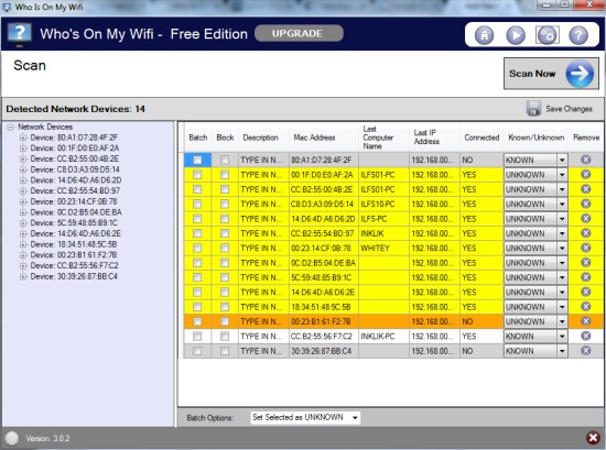 It shows total number of devices (currently connected or not) on your network with details. However, to block a device is not possible with this free version. You have to upgrade ($ 7.95 per month) by signing up online to block a device. Upgrading with this handy utility also offers remote management, real-time notifications, etc. First you try this free version, if you find it really helpful, then you can sign up online to add more features in this software.