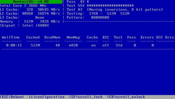 On the screenshot down below you can see the only interface that you’re gonna see when running MemTest. Like we already mentioned, it doesn’t have any kind of special steps that are required in order to start checking memory, apart from of course the fact that you’re gonna have to prepare either the flash drive or the CD that you’re gonna use.