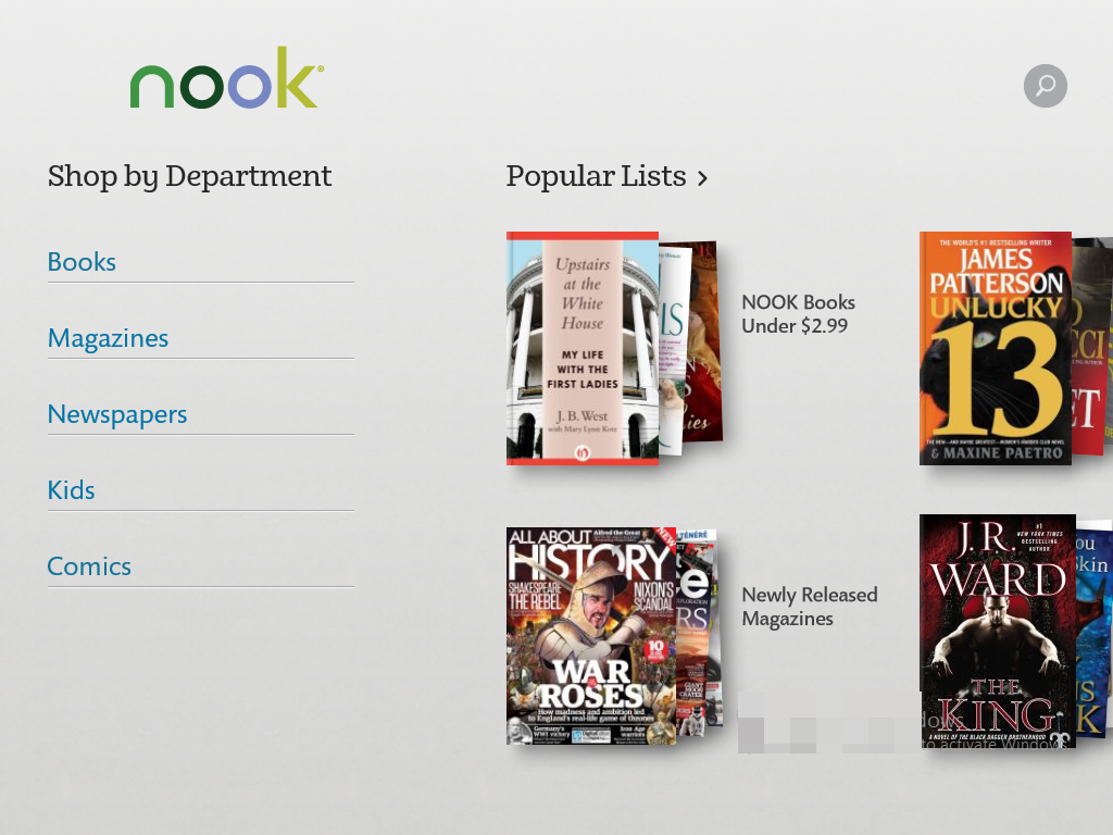 Nook lets you to read the sample of any book so that you can decide whether the book is worth purchasing or not. You can add bookmark, text or any notes. It provides browsing in different categories like: Books, Magazines, Newspaper, Comics, and Kids.