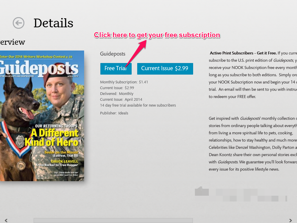 - Free 14-day trial subscriptions of books and magazines for new users.