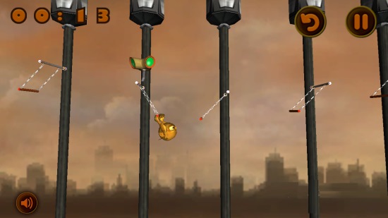 In the game, a robot will be shown to you. You just have to help the robot get to the other side safely by jumping from one hanger to another. Initial levels would be having simple hangers. As the game progress, more complex ones would be added, thereby increasing the difficulty level. Hangers would be static, rotating, swinging, and even moving up and down.