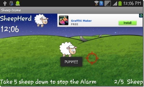 Shepherd: This alarm mode is for those who have a habit of turning the alarm off and going to sleep. It offers you sheep counter in which you have to shoot down 5 sheep’s to shut down the alarm. For shooting the sheep, you need to tap on them.