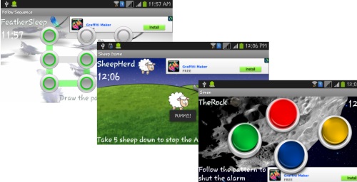 Alarm Puzzle is a free alarm clock app for Android that offers you three interesting alarm modes that you can choose to wake-up in the morning. These modes are: Feather Sleep, Shepherd, and The Rock. In all these modes, you have to perform some task on your phone to turn off the alarm. Theses modes can be set according to the sleeping habits of any person. The first mode basically offers you soothing alarm sound and you have to draw a particular pattern on screen. This mode can be used if you are alarm-friendly and punctual. The second mode of alarm offers you a shepherd game in which you have to shoot 5 sheeps to dismiss the alarm. The third mode shows glow buttons on screen, which glow in a particular pattern. You have to press the buttons in same order to shut down the alarm.