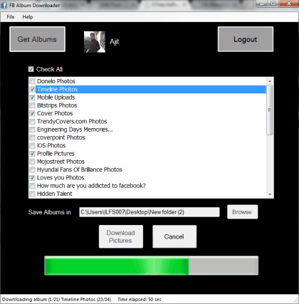 FB Album Downloader is a simple and useful software that you can use to download your all Facebook albums. Unique feature of this freeware is that it lets you download all albums in single go. Moreover, all albums are downloaded with their original name also. Using its interface, you can select some required albums as well. For downloading the albums, it gives you option to select destination folder of your choice. You won’t be able to get tagged and friends albums. But backup of all your Facebook albums can be done quickly and with few mouse clicks.