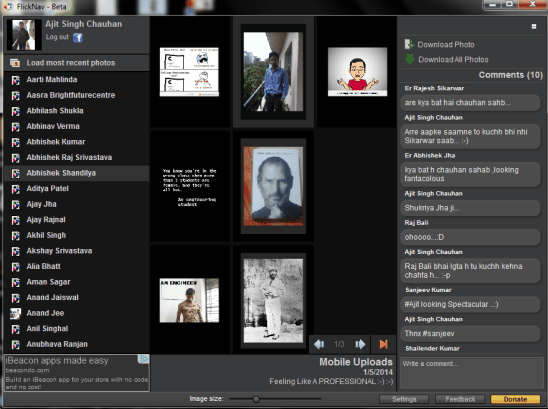 FlickNav (or Kurst FlickNav) is one of the best software in this list. It is helpful to view all your photos in large size. Special feature of this software is that it lets you view all the comments of a particular photo. You can even batch download any of your friend’s photos. Moreover, download process can also be resumed or paused anytime by you. It comes with a navigation pane where your friend list will be visible to you. Clicking on any friend name will explore all photos in middle part on its interface. You can view those photos, and can even download a single photo or all the available photos.