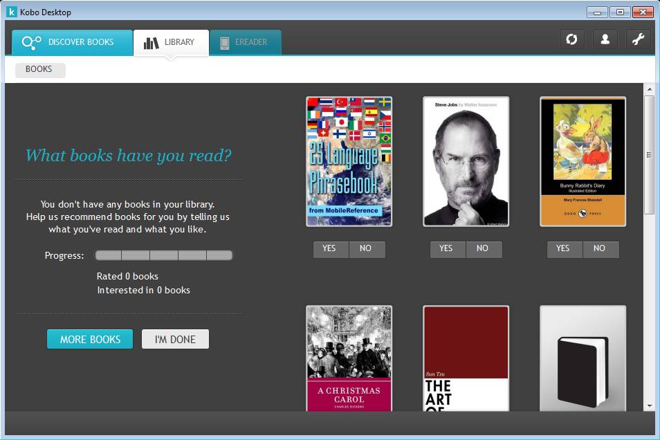 This is done so that this free ebook manager knows what to suggest to you, to know your taste. After completing this step you should see the homepage with books suggestions waiting for you.
