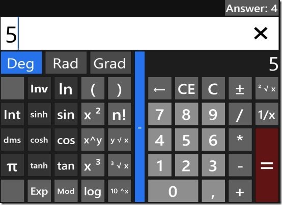 This kind of clearly separated interface makes this calculator fun and simple to use also a person who does not need or know how to use scientific functions will not get confused as the interface is clearly separated. But if this does not work for you then you can always switch back to the basic version but simply clicking on the ‘-‘ button in the middle which separates the interface. Another good feature about this app is that it has really large buttons with a perfect for use on a touch screen device.