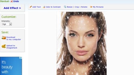 Photo Editor is another popular add photo effects website that allows you edit photos online, thereby making beautiful photos. You can upload a photo else use URL of an image on the Internet. After editing a photo, you can also take a print out, download it or save it online.
