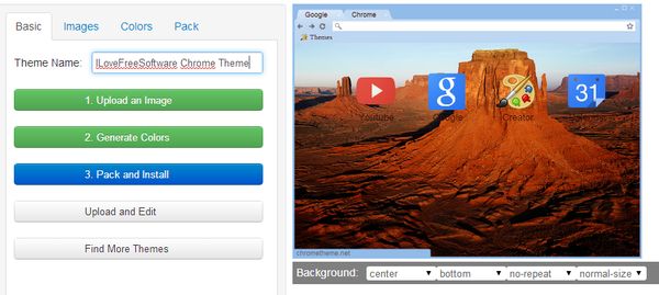 Three step setup requires you to set the background image, change window border colors and lastly to install and export the theme as a CRX file. There’s a slight difference between this extension and the Theme Creator app in that My Chrome Theme allows you to add effects to the background image and also to customize its position. My Chrome Theme is the official theme creator that’s offered by Google.